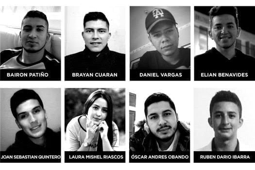 En este hecho las víctimas fueron jóvenes estudiantes, quienes quedaron identificados como Óscar Andrés Obando (17 años), Daniel Vargas (22 años), Laura Michel Melo (19 años), Campo Elías Benavides (19 años); Bayron Patiño (23 años), Rubén Darío Ibarra (24 años), Jhon Sebastián Quintero (24 años) y Brayan Alexis Cuarán (25 años).