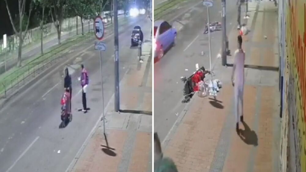 Grave accidente se presentó en la localidad de Bosa cuando una moto arrolló un bebé que era empujado en su coche por su padre. Según las versiones entregadas, el pequeño se encuentra bien pese al impacto de la moto. pic.twitter.com/F6KEbbYCkW