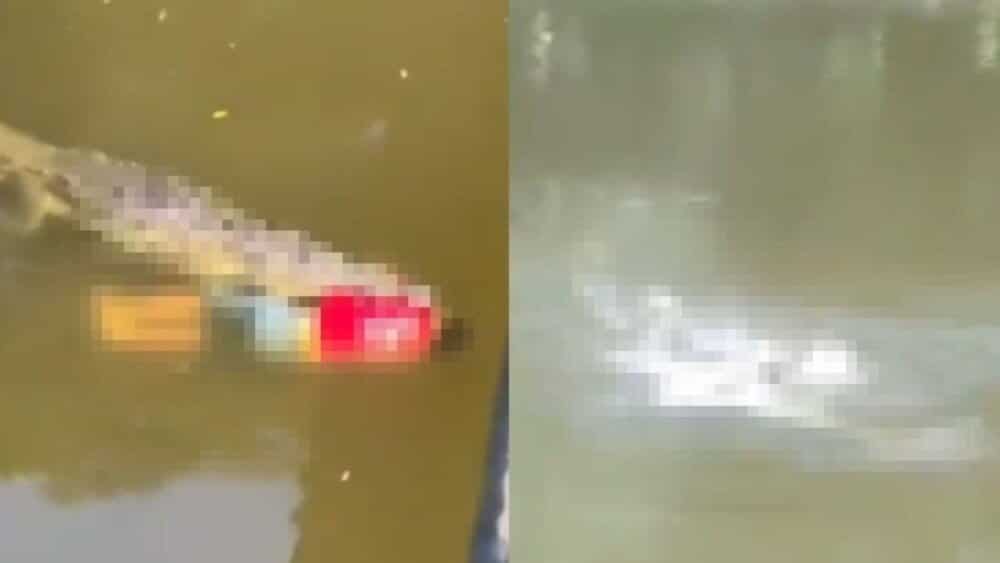 En las impactantes imágenes que circulan en Internet, se logra apreciar que ya fallecido el cocodrilo aún llevaba el cuerpo del futbolista en la boca y se no lo soltaba a pesar de que los testigos lo estaban hostigando con piedras y otros objetos.