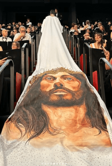 Polémica en Cannes: sacaron a actriz que llevó el rostro de Jesucristo en la cola de su vestido