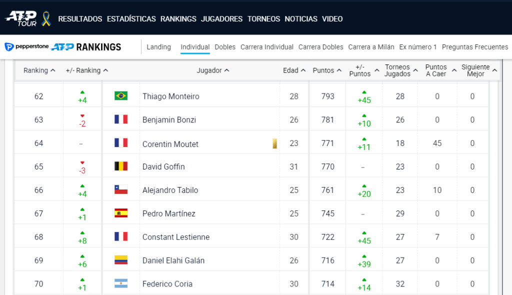 Así, Daniel Galán ha podido seguir escalando en el Ranking de la Asociación de Tenistas Profesionales, una clasificación que reúne a los mejores tenistas masculinos del mundo en las categorías individual y dobles desde el año 1973.