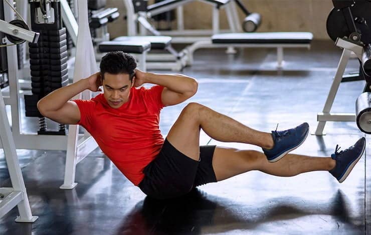 Este ejercicio fortalece los músculos abdominales, especialmente los oblicuos, para eliminar los rollitos de la cintura. Gire el torso en posición sentada con los pies separados del suelo, manteniendo el equilibrio. La idea es llevar las manos a ambos lados de las caderas mientras se coloca la espalda correctamente.