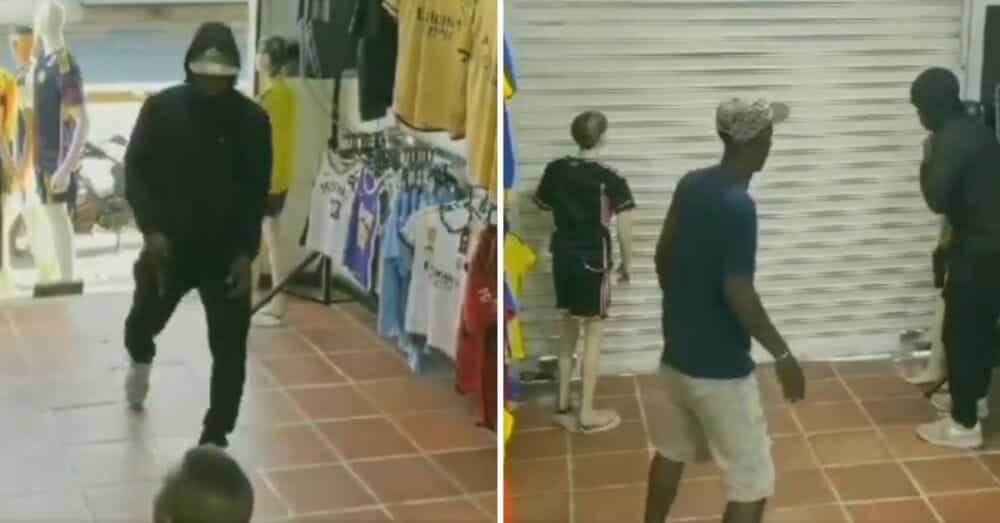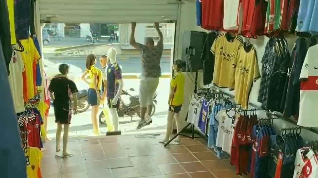 Cali 🇨🇴: Un comerciante de una tienda de ropa deportiva fue asaltado por dos ladrones que lo intimidaron con un arma, pero su astucia no solo frustró el robo, sino que pudo contribuir a su captura. pic.twitter.com/oaZm5ggTbf