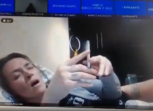 Las imágenes, que han circulado masivamente en las redes sociales, se ve a la togada acostada en lo que parece ser su cama, despeinada, semidesnuda, como recién levantada y con un cigarrillo en la cama. «Señora jueza tiene la cámara prendida», le manifestó una de los presentes en la diligencia.