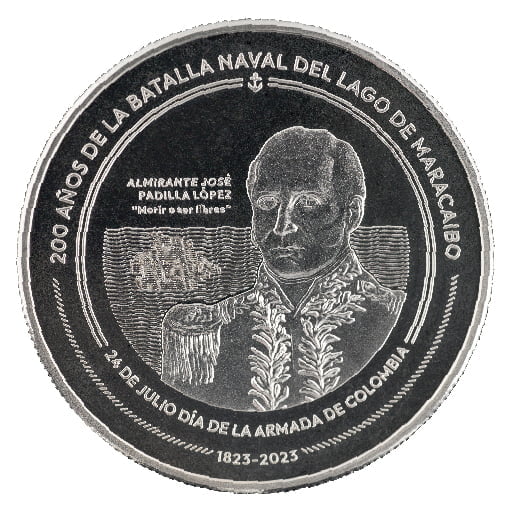 En su página web el Banco de la República explica que esta nueva moneda «en el anverso incluye la imagen del Almirante José Padilla López, quien el 24 de julio de 1823 derrotó a la Real Marina Española en la batalla del lago de Maracaibo, con lo cual se consolidó la independencia de Colombia. A su izquierda figura el texto «Almirante José Padilla López» y la frase «M0rir o ser libres».