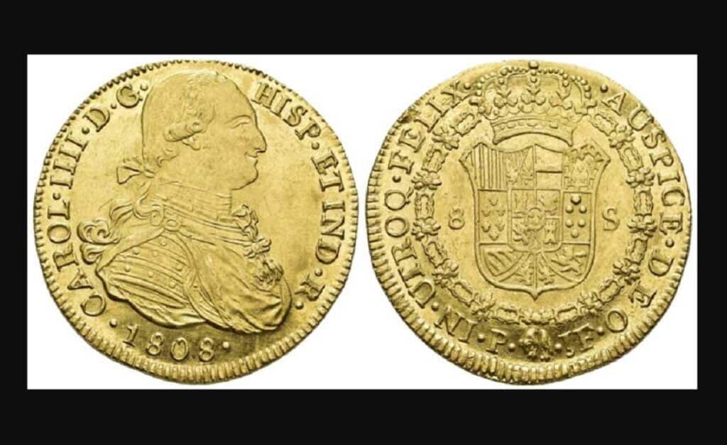 Se trata de la moneda de los ‘8 escudos’, la cual tiene en uno de sus reversos el rostro de Carlos, rey de España, quien era la mayor autoridad durante los últimos tiempos de la colonización, época en la que esa pecunia circulaba en territorio colombia.