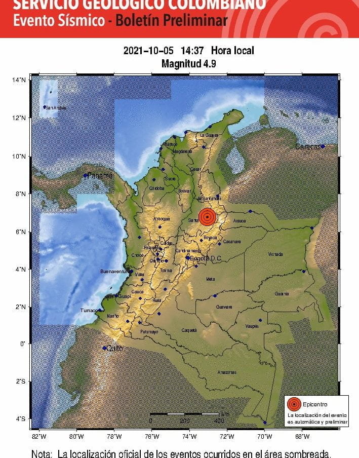 En la tarde de este martes un fuerte temblor sacudió al oriente del país, según el Servicio Geológico. El evento sísmico de 5,1 se sintió exactamente a las 2:37.