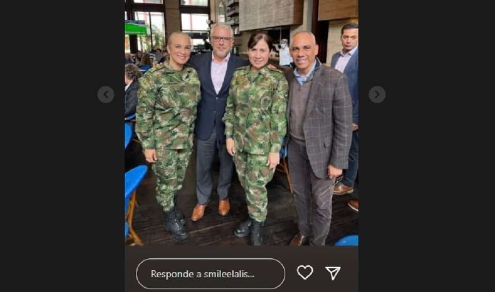 En la imagen que ha estado circulando en Internet aparece junto a dos uniformados del Ejército. También le acompaña el exgeneral Eduardo Zapateiro, quien durante su gestión presidencial se desempeñó como comandante del Ejército Nacional y renunció de manera inmediata cuando Petro ganó las elecciones.