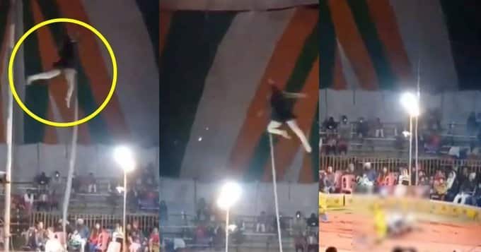 GIMNASTA DE UN CIRCO INDIO SE AHORCA EN VIVO 💀💀 pic.twitter.com/PJyhKqhJe7