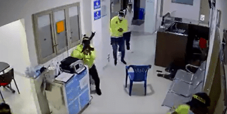 En la grabación se puede apreciar cómo fue que al menos seis hombres vestidos con uniformes de la Dijin de la Policía, ingresaron al centro médico cargados con armas de fuego. Su objetivo era Jorge Luis Alfonso López, pero él salió del ileso del suceso.