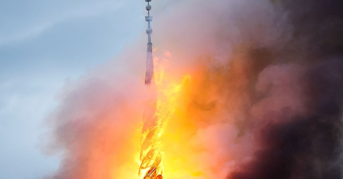 🇩🇰 | URGENTE: Arde el histórico edificio de la Bolsa de Copenhague de 400 años de antigüedad: la aguja se ha derrumbado. pic.twitter.com/FKFYHu73Zr