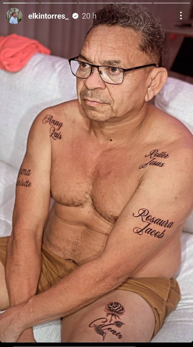 El tatuador Elkin Torres confirmó en sus redes sociales que durante su paso por Inglaterra, ‘Mane’ Díaz decidió tatuarse nueve nombres: Anny, Luis, Roller y Jesús (sus hijos),  Roma y Charlotte (sus nietos) Rosaura y Jacob (sus padres) y Cilenis (su esposa y madre de Luis Díaz).