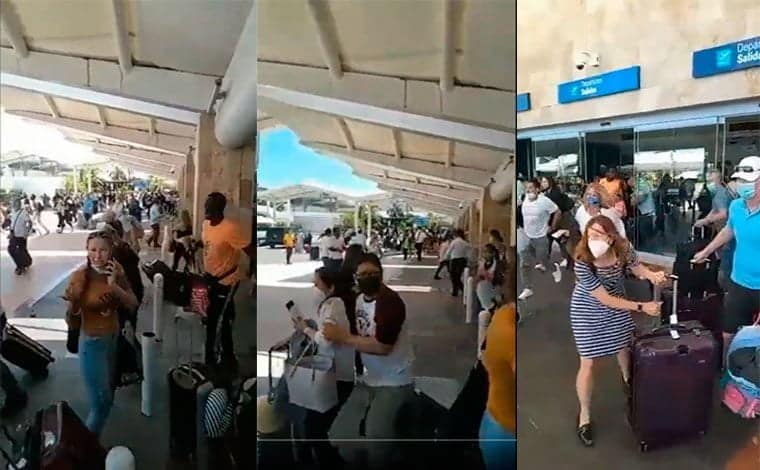 Momentos de pánico se vivieron este lunes, 28 de marzo de 2022, en el aeropuerto internacional de Cancún, México, por lo que muchos creyeron que fue un tiroteo.