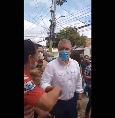En videos compartidos en redes, algunas personas le dieron la mano al presidente en un local de cholados, pero al salir otros ciudadanos le empezaron a gritar “vaya a puerto resistencia, a ‘la loma’”, haciendo referencia a los puntos de bloqueos más concurridos y donde están los jóvenes de primera línea.