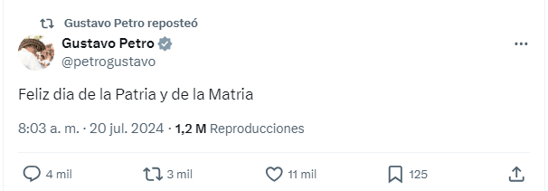 Este 20 de julio el presidente Gustavo Petro ha sido objeto de críticas por muchas situaciones, todas enmarcadas en los actos conmemorativos del Día de la Independencia. Por citar un ejemplo, el jefe de Estado hizo un comentario en sus redes sociales que dio muchísimo de qué hablar.