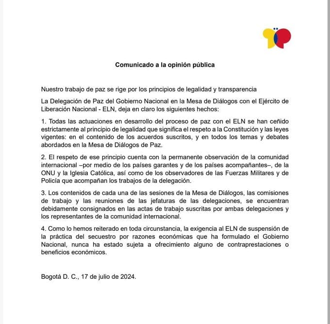 “Ellos emitieron un comunicado en el que volvían a los secuestros porque no les han garantizado la manutención de los hombres en los acuerdos de paz. ¿Y cómo lo iban a garantizar? Con contratos”, precisó.