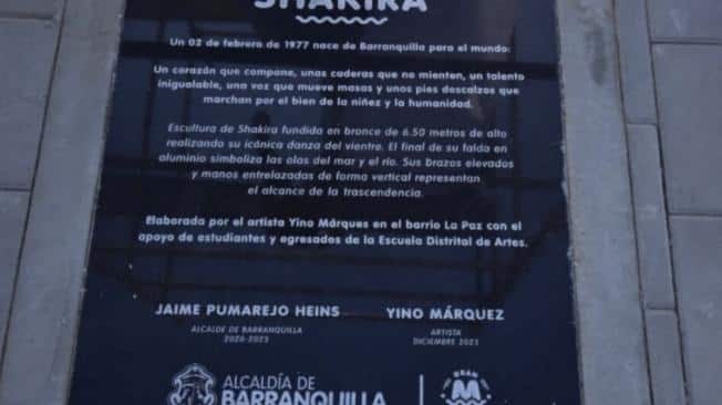 Placa de la estatua de Shakira se habría expuesto con un pronunciado error ortográfico