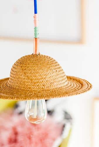 Un simple sombrero puede transformarse en una lámpara elegante. Necesitará un sombrero de paja, una bombilla y un cable adecuados, una navaja, aguja e hilo.