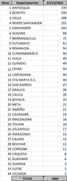 Este es el reporte de contagios y muertes por COVID en Colombia, presentado por el Ministerio de Salud; correspondientes al 15 de diciembre de 2021: