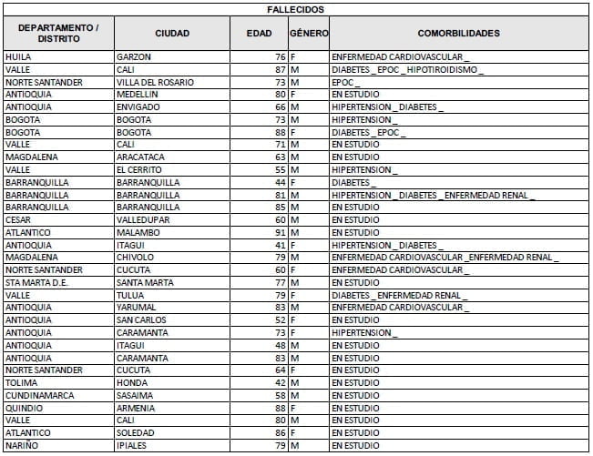 Las cifras de este reporte diario de coronavirus, se suman al reporte oficial de totales, desde el inicio de la pandemia de COVID-19 en Colombia, así: