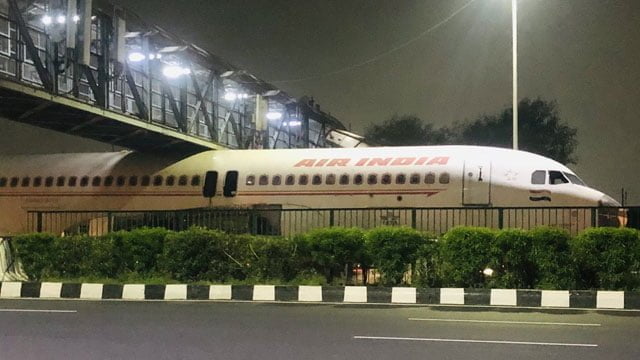 Videos: un avión de pasajeros queda atascado debajo de un puente peatonal en la India