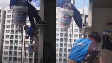Video: cortó las cuerdas de seguridad de trabajadores que pintaban la fachada de un edificio