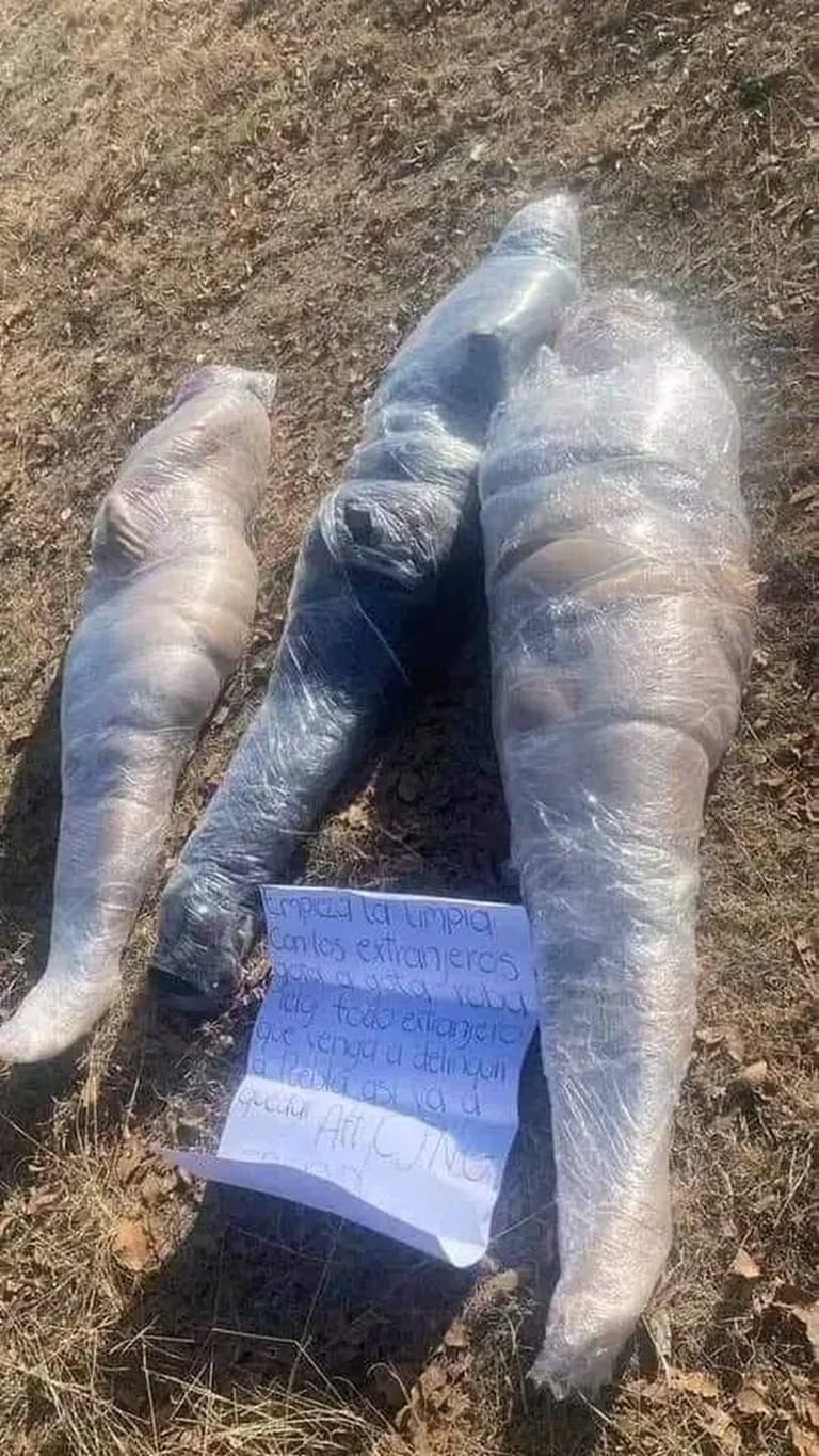 Sin embargo, junto a los cadáveres de los tres colombianos que fueron prácticamente embalados con cinta y plástico, se encontró un letrero firmado por el Cartel de Jalisco, en donde los señalaron de ser ‘gota a gota’ y de estar vinculados a actividades delictivas.