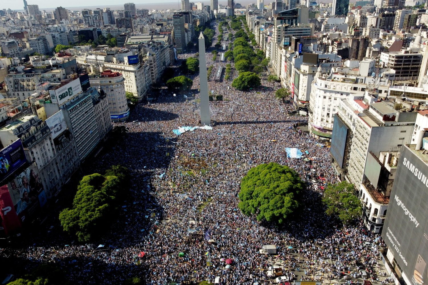 Las imágenes difundidas por varios medios de comunicación y por los propios fanáticos de la Albiceleste muestran un lleno total tanto en el Obelisco como en otras calles principales de Buenos Aires y, en general, de todo el país, siendo esta una de las manifestaciones públicas más grandes del país sudamericano.