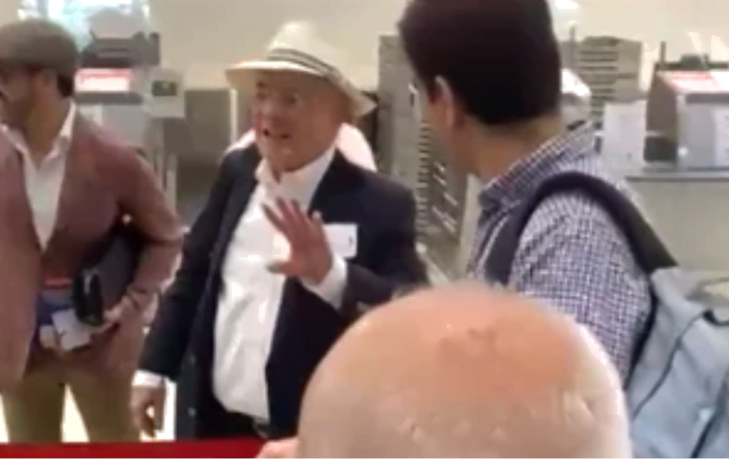 El video muestra que Uribe lucía un traje de color color negro y un sombrero blanco y que iba pasando por el área de checking, cuando un joven de cabello rizado le dice algunas palabras que no se alcanzan a entender con claridad.