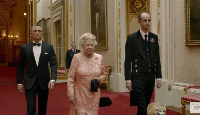 Durante la ceremonia de inauguración, la monarca protagonizó uno de los momentos más recordados cuando hizo su entrada al Estadio Olímpico de Londres acompañada por James Bond. En el evento se presentó un video en el que Bond (Daniel Craig) llega al Palacio de Buckingham. Allí espera el momento para acompañar a la reina Isabel II a la ceremonia de apertura.