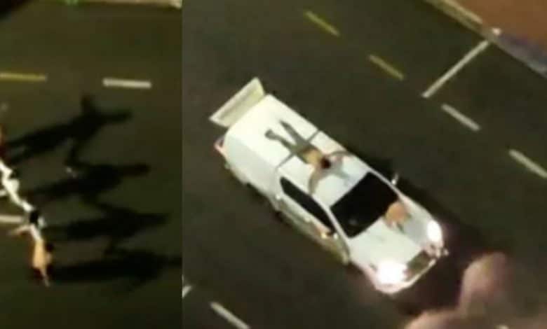 Video: ladrones amarraron rehenes en sus carros para huir
